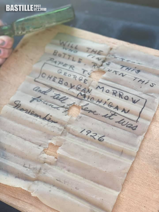 美國女潛水拾獲近1世紀前漂流瓶 網尋得主人後代