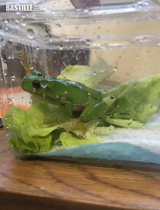 澳洲有19歲女生早前到超級市場購買了一包冰鮮生菜,回家後就將生菜放進雪櫃,待烹煮時才拿取所需的份量。未料到了第3天時,她竟在生菜包中發現一隻青蛙,嚇得她馬上將牠安置在塑膠盒中,並轉交獸醫處理。