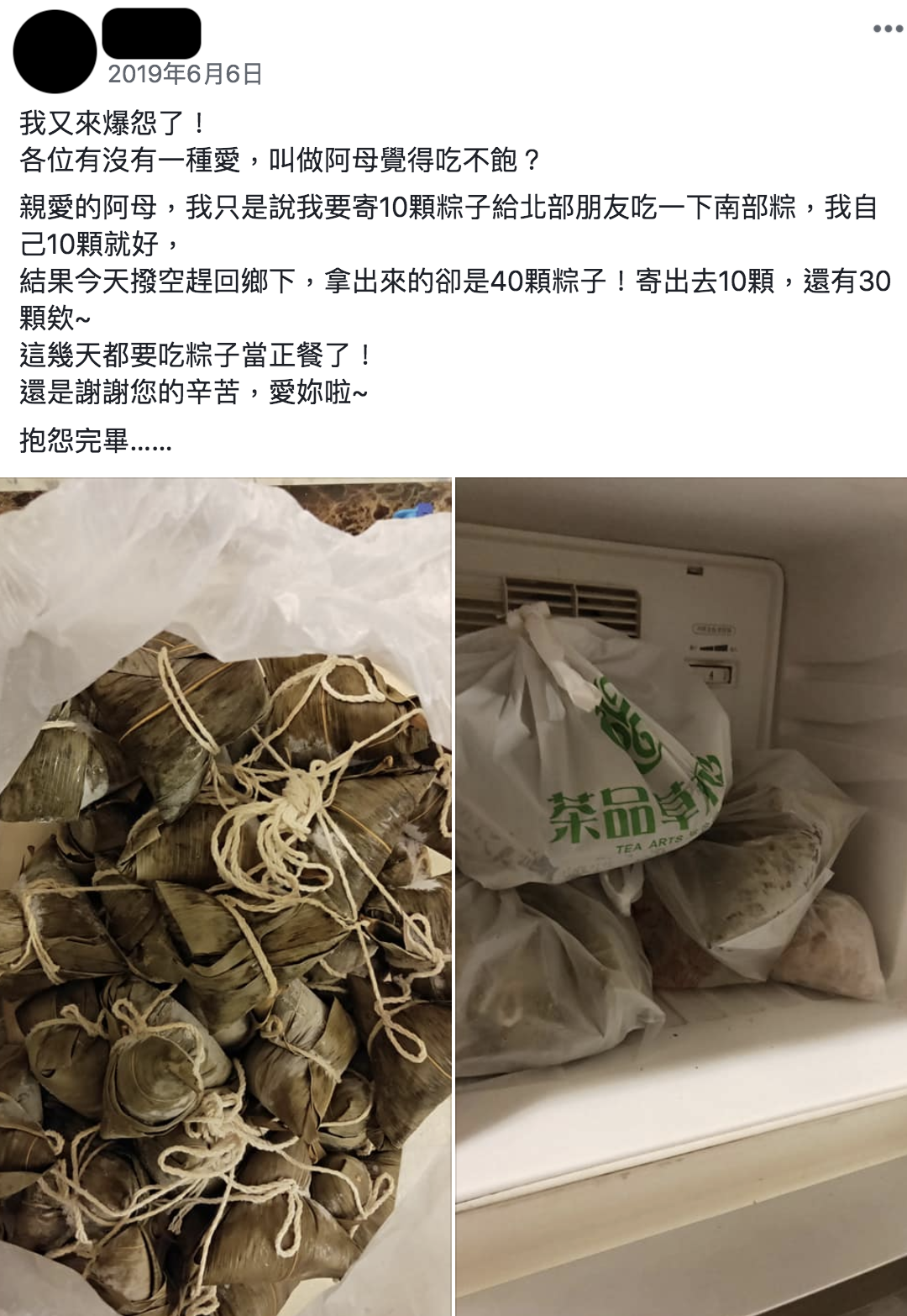 媽媽寄40顆粽吃不完!他去年發文「假抱怨真炫耀」 今年再發文:想吃卻再也吃不到