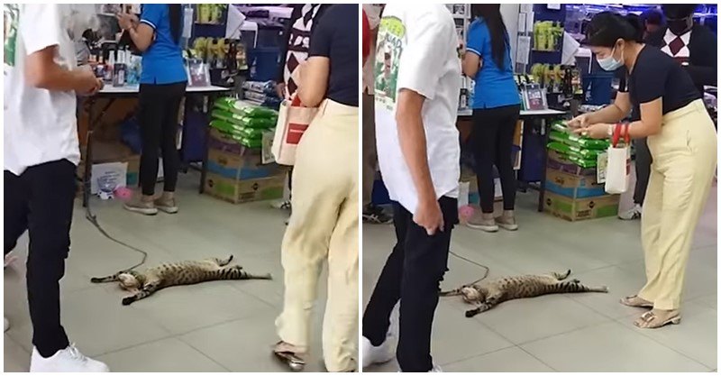 影片中可以看到,這隻陪主人來上班的虎斑喵自顧自在地上睡起覺來,還安穩地翻肚肚加人字躺平,實在是讓人不禁懷疑這隻貓昨晚到底是喝了多少杯?如此豪放沒戒心的爆笑睡姿也讓所有經過的顧客忍不住多看兩眼!
