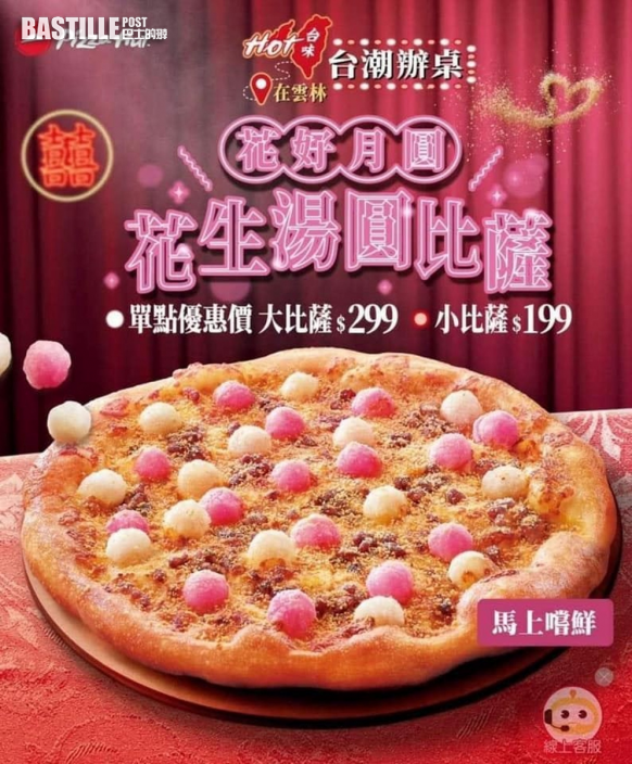 近日有網友在PTT上分享一張Pizza Hut新產品廣告圖,只見上面寫著「香菜皮蛋豬血糕比薩」,並強調配料是選用林小農契作香菜、Q彈皮蛋、滷香豬血糕、雲林特濃花生醬等食材製作,還指「超台混搭!很搭!」。
