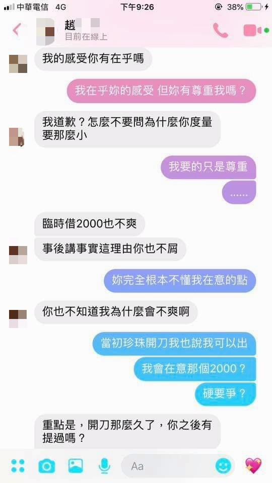 如果這些對話大家還是認為我是想找藉口分手,那我願意成為全民公敵。
