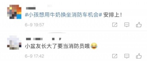 大陸江西有兩名小朋友,拎著兩箱牛奶來到消防隊門口:「消防隊員叔叔,我可不可以用兩箱牛奶,換一次坐消防車的機會?」