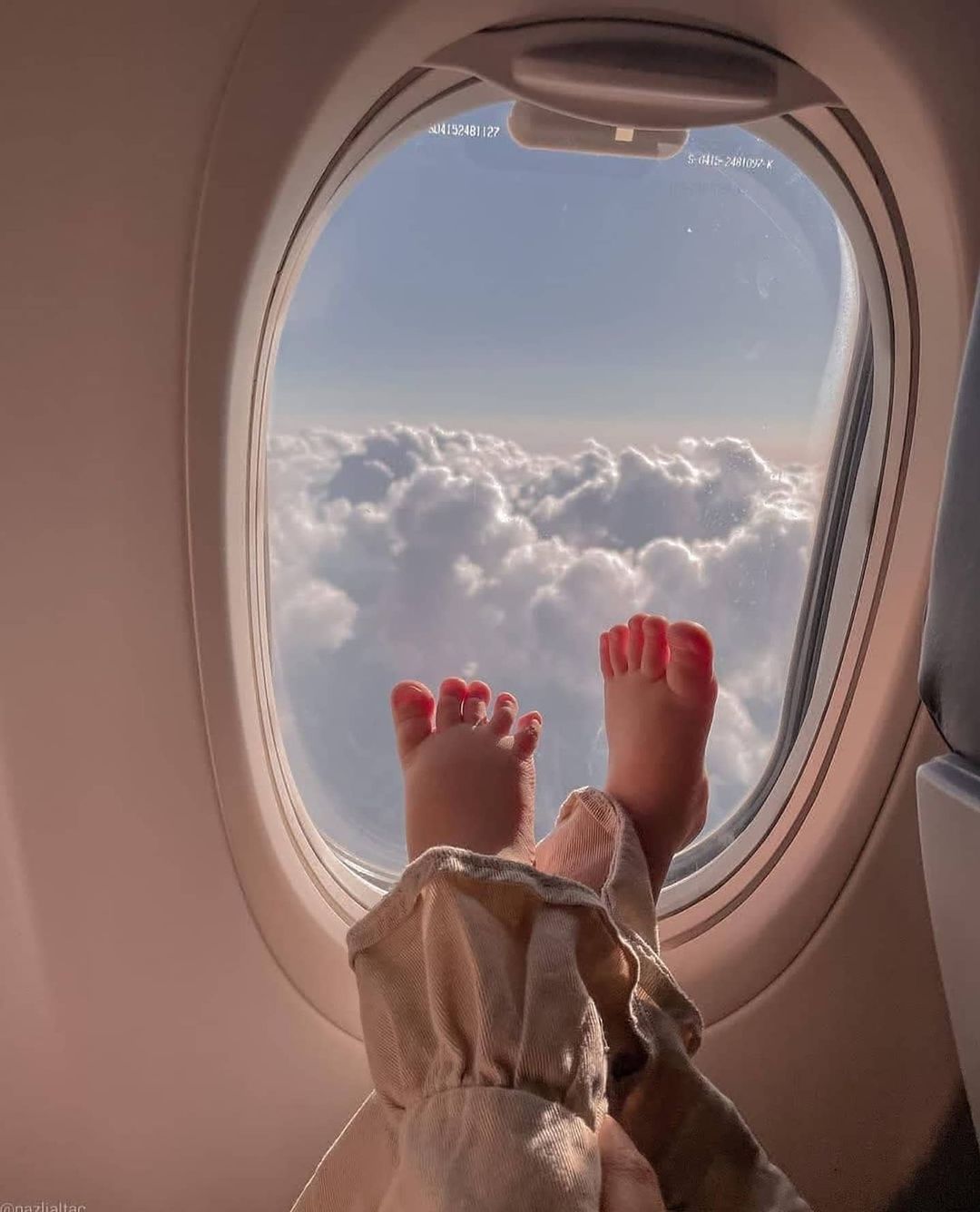 出門玩耍的系列~~小寶寶搭飛機也太Q!這個角度很會享受喔XDD