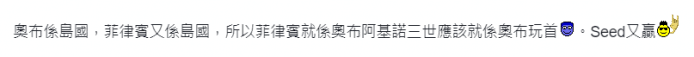 不少網民聽後都覺得相當神奇,更有網民於下方留言指樓主聽力相當好「咁都聽得出」,亦有網民質疑是否彈琴的琴師故意戲弄。有網民更沿用機動戰士高達 SEED DESTINY 中的背景,笑稱奧布是島國,菲律賓亦同樣是島國,因此播這首歌為合理舉動。