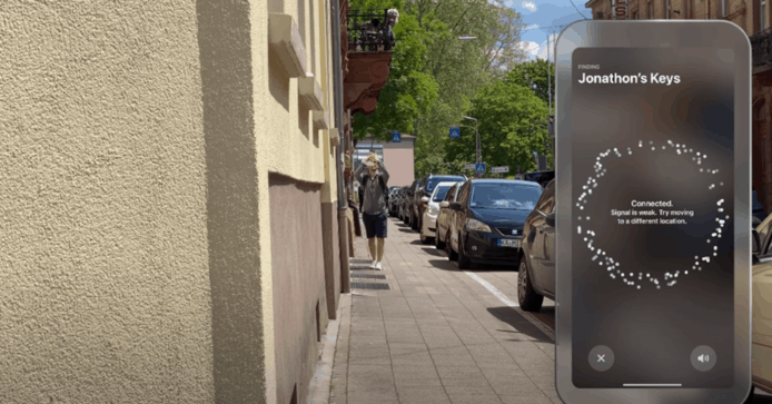 然而該 YouTuber 在鑰匙與錢包上亦有掛上 AirTag,錢包被好心人撿到還回,而鑰匙卻沒有那麼幸運,被帶到 300 公里外的社區,最終亦沒找回。他發現即使離 AirTag 位置很近,但若 AirTag 在建築物裡面是無法連線成功的,亦無法定位。他亦透過把 AirTag 放在門的另一側測試,結果亦同樣無法連線以及定位,可見 AirTag 如果被擋住便無法接收到訊號。