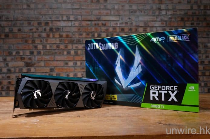 今次借來了 ZOTAC 的 RTX 3080 Ti AMP Holo 版本顯示卡,為非公版設計。除了卡身散熱器稍作改良之外,亦用上全息極光設計,幻彩效果更為吸引眼球。公版的 Boost 時脈是 1665MHz,但此卡則在出廠時已提升 Boost 時脈至 1710MHz。而遊戲開發商逐漸支援 DLSS 及光追技術,相信 RTX 3080 Ti 已綽綽有餘。