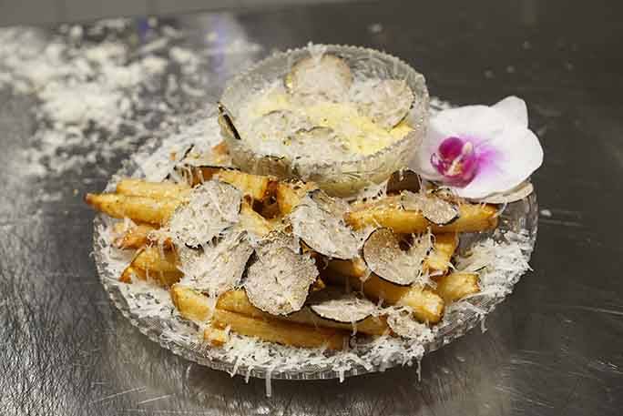 綜合外媒報導,紐約曼哈頓曼哈頓上東區的一家餐廳Serendipity3 早前推出一道名為 Creme de la Creme Pommes Frites的餐點,主要食材是Chipperbeck薯仔,加入Dom Perignon香檳、J. LeBlanc法國香檳醋、法國非籠養鵝油、蓋朗德松露鹽、松露油、Crete Senesi Pecorino Tartufello芝士、意大利黑色夏季松露、松露黃油、來自Jersey牛的有機 A2 A2 100% 草飼忌廉、瑞士松露Raclette芝士以及23克拉可食用金粉。