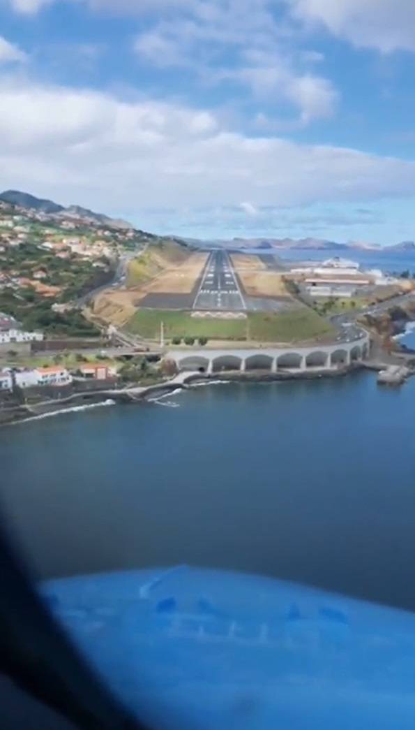 時常在TikTok賬戶上分享飛行軼事的飛機師@azey_rlb日前上載一條影片,展示他駕駛飛機降落在位於葡萄牙馬德拉島的基斯坦奴·朗拿度機場的過程。影片是從駕駛艙向外拍攝,遠遠可望到小小的機場建在海邊山坡上,跑道極短盡頭更是懸崖,加上四周環海,氣流變化很大,著陸的難度很高。