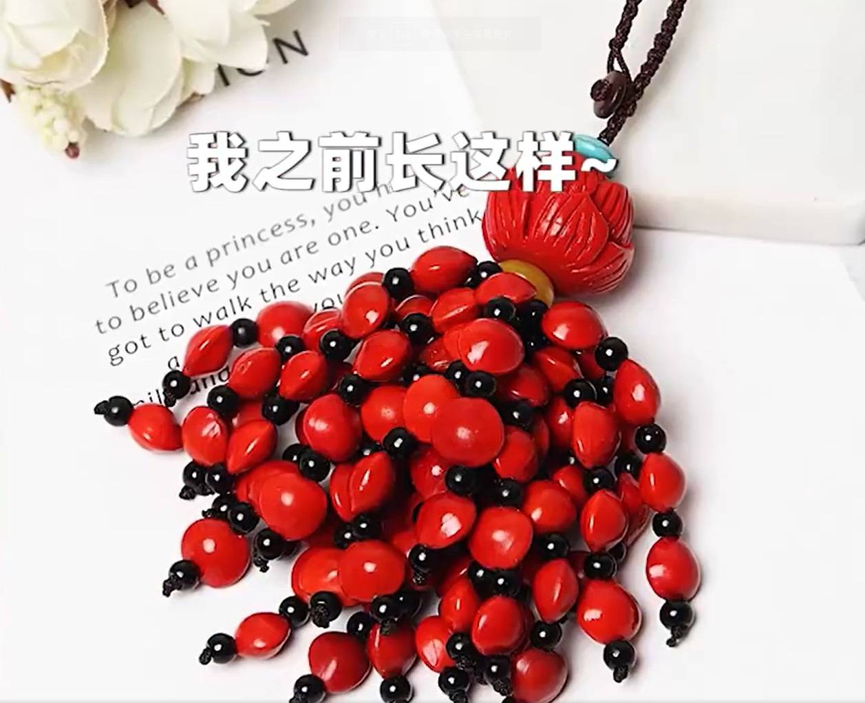 女子表示,當時停車的位置並沒有遮蓋,汽車在暴曬下溫度漸高,竟將相思豆曬爆了。她也分享了一張相思豆吊飾被曬爆前的樣子,變形程度驚人,令她直呼「可怕!」