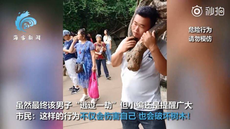 事發於貴州安順黃果樹景區,從內媒影片可見,一名身穿白色上衣的男子為了拍照,興高采烈地將頭鑽到一個由樹枝分叉所形成的「V」形樹洞,還高舉「yeah」手勢留影。可是當他拍完照後,卻發現頭部被樹洞卡住,無法進退。