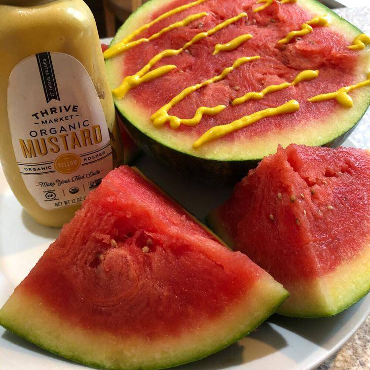 除了酸黃瓜和朱古力的另類搭配外,也有不少人嘗試在夏日果品西瓜上加黃芥末醬後一起食用,William也親自嘗試過之後表示意外還蠻好吃的,打分是7分。