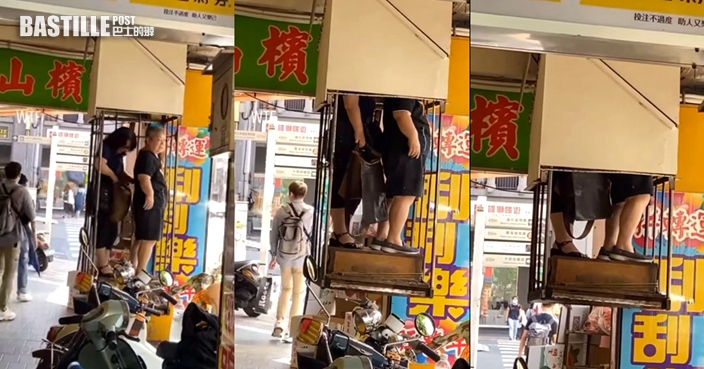 台街頭現極簡陋「開放式升降機」 腳踩木箱僅容兩乘客