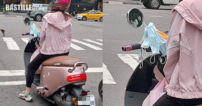 台電單車女騎士照後鏡掛滿口罩 路人好奇:究竟做咩用?