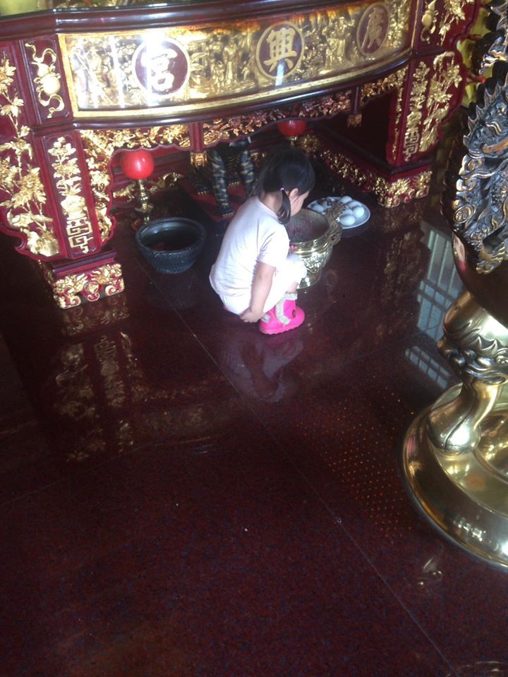 拜虎爺突然蹲下!3歲女兒「用手扶著金爐」五官全皺成團 媽媽看清後「秒腿軟下跪」:不知者無罪
