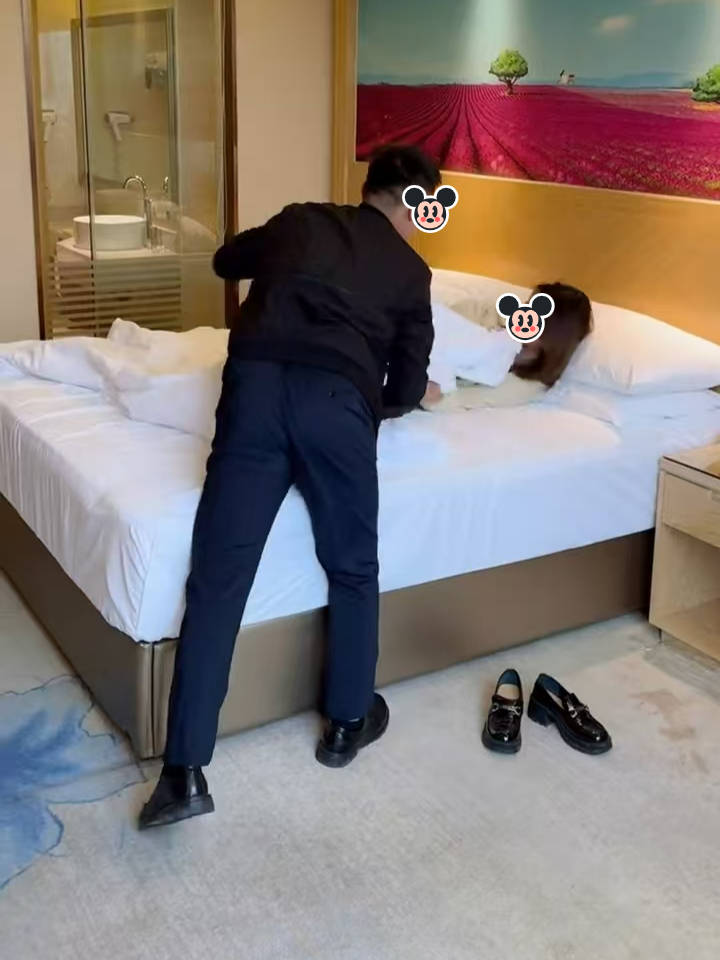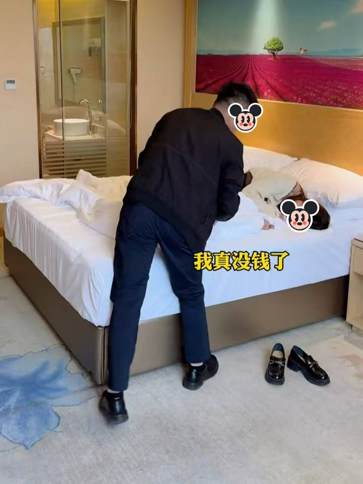 原以為自己這樣說男子會同意,但是男子卻沒有那麼草率,他見女子賴著不走,於是便拉著女子要去退房。