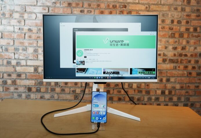 ▲將 Pixel 手機連接外置顯示器,即可在顯示器上看到類似電腦桌面介面