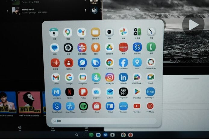新版 DeX 在介面上有幾項調整:設定頁面的獨立「DeX」分頁改為「已連接顯示器」選單,應用程式抽屜改為垂直捲動,工作列亦同步反映手機桌面固定的應用程式。