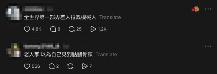 事件在各大社交平台迅速瘋傳,網民反應兩極。有人笑稱「澳門警察成為全球首宗拘捕機械人的人類」,亦有人將婆婆與慈禧太后初見 Benz 汽車時的反應相提並論,形容事件「好 cyberpunk」,更有人笑言反而是「阿婆嚇親個機械人多啲」。