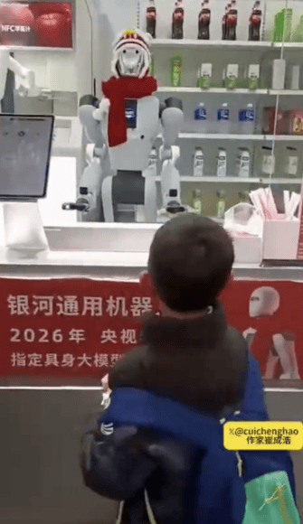 然而舞台以外的現實考驗並不那麼光鮮。銀河通用目前以「銀河太空艙」無人商店形式進行商業化部署,標榜 Galbot G1 可自主接單、抓取商品並直接遞給顧客。瘋傳影片顯示,一名小男孩在商店下單後,機械人禮貌回應「我收到訂單了」,隨即轉身撞倒多排貨架。