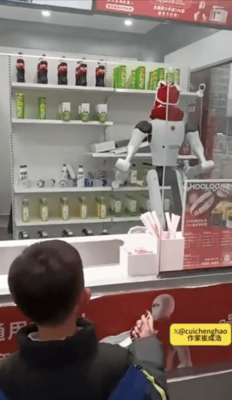 在今年央視春晚亮相的人形機械人 Galbot 再度登上熱搜。一段近日在社群平台 X 及 Threads 廣泛流傳影片顯示,Galbot 在「銀河太空艙」無人商店擔任店員期間,一轉身便撞翻數排貨架,飲料及零食散落一地,引起網絡嘲諷。