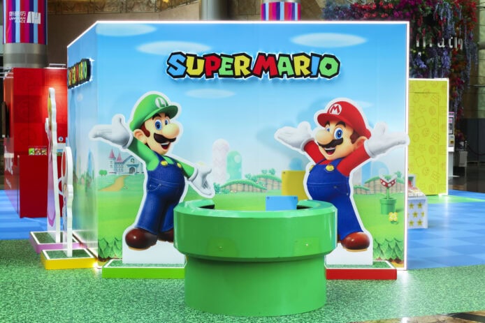現場特設多個「超級瑪利歐」主題打卡區,重現蘑菇王國標誌性「水管」場景供玩家留念。場外另設有瑪利歐、路易吉、碧姬及奇諾比奧角色立牌,粉絲可一次「集齊」4 位人氣角色合照。