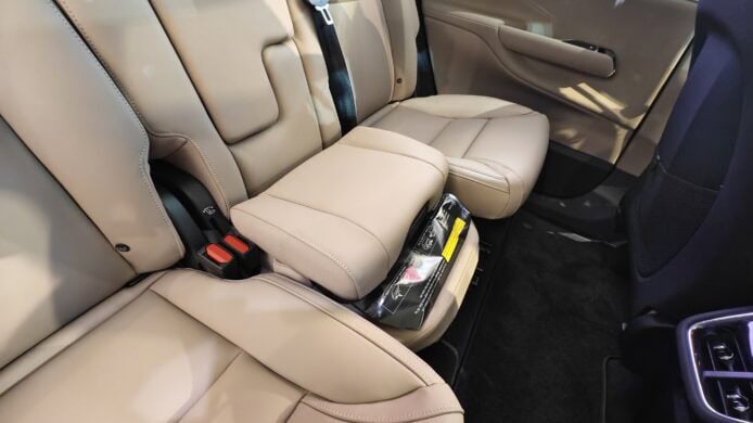 EX90 得益於純電平台平整地台設計,車廂空間非常寬敞。第三排座椅採用人體工學設計,成年人坐下仍有充裕頭部及腿部空間。第二排中央座椅內置隱藏式兒童增高墊 (Booster Cushion),配合香港 2025 年 11 月 1 日生效新法例。新例規定 8 歲以下或身高 135 厘米以下兒童必須使用兒童束縛裝置,EX90 內置設計令家長免卻頻繁拆裝外置安全椅。
