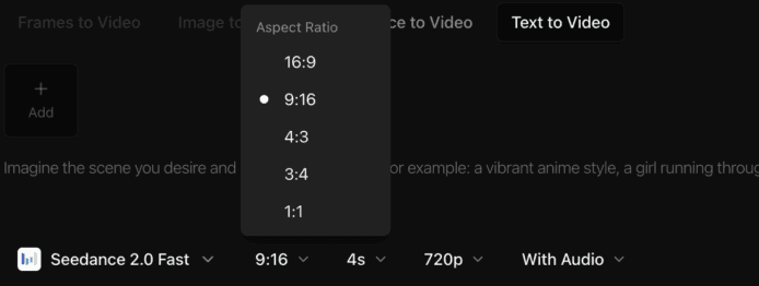 而且,生成影片前可以選擇影片比例,由於我們想將影片發布到 Instagram Reels,所以我們選擇了 9:16 直向影片,Seedance 2.0 成功把原本橫向的 16:9 影片轉成直向,可見它的操控自由度很大。