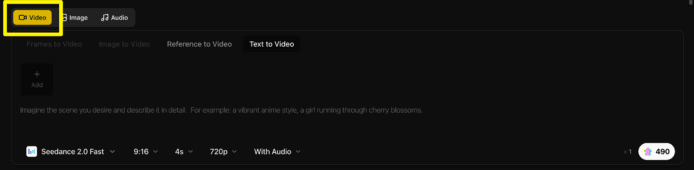 不過用家需要特別留意其 Credit 機制,免費用戶通常只有 500 Credit 的初始額度,而使用 Seedance 2.0 Fast 生成一段 720P 的 5 秒影片就需要消耗 495 Credit。 生成前請務必檢查比例(如 9:16 或 16:9)是否設定正確,以免浪費唯一機會。