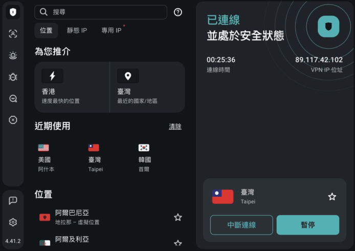 在展開教學前,香港讀者必須留意,由於 ChatGPT 服務尚未在香港地區正式開放,我們依然需要使用 VPN 連接到其他獲支援的地區,小編就建議連接至地理位置與香港較近的台灣節點,網絡反應通常會比較流暢穩定。