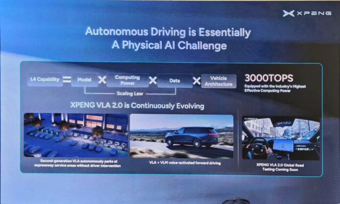 他再指出,1 粒圖靈晶片名義上的算力大約等如 3 粒 Nvidia Orin-X,但根據小鵬廠方數據顯示,基於自家系統優化及度身定制自動駕駛算法,圖靈晶片的有效實際算力等於 10 粒 Orin-X 晶片,採用 4 粒晶片的車型合共 3,000 TOPS 算力足以應付未來 L4 級別的自動駕駛能力,並能同時驅動智能座艙與自動駕駛的大型 AI 模型。